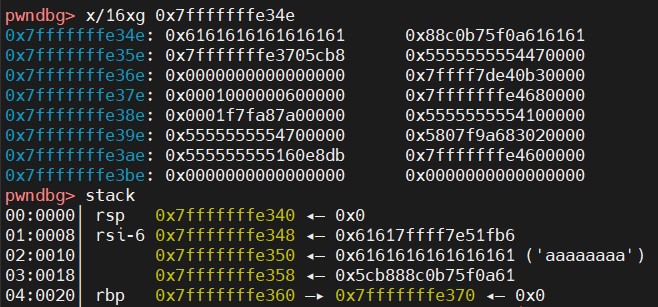 chall发现在getFeedback函数中,rbp-old_rbp=0x10,分布如下| old_rbp |<- rbp | ret addr| | |<-old_rbp而在