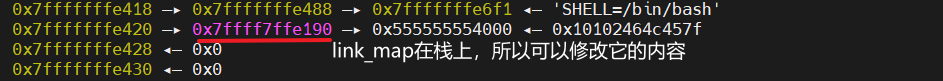 # link_map->l_addr += 0x38, write free at exit@got | |