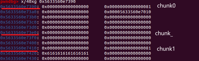 add(1, 0x70, 'e' * 8) # chunk1=chunk__ | |
