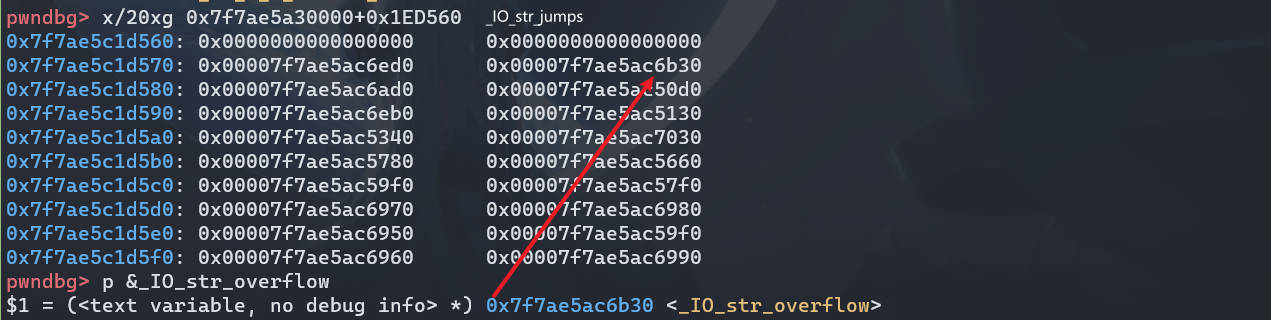 IO_str_vtable = libc_base + 0x1ED560 | |