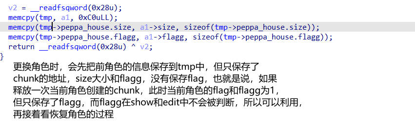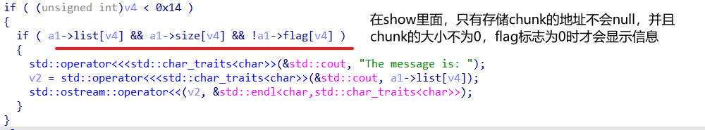 上面有 malloc 、 memcpy 和 free ,所以考虑绕过里面的一些条件从而调用 malloc ,先看一下调用的部分
